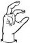 На ћирилици написано НИКОДИЈЕ РАКЕЗИЋ састоји се из 15 слова [?]. Исписано ћириличном једноручном азбуком за глувонеме: